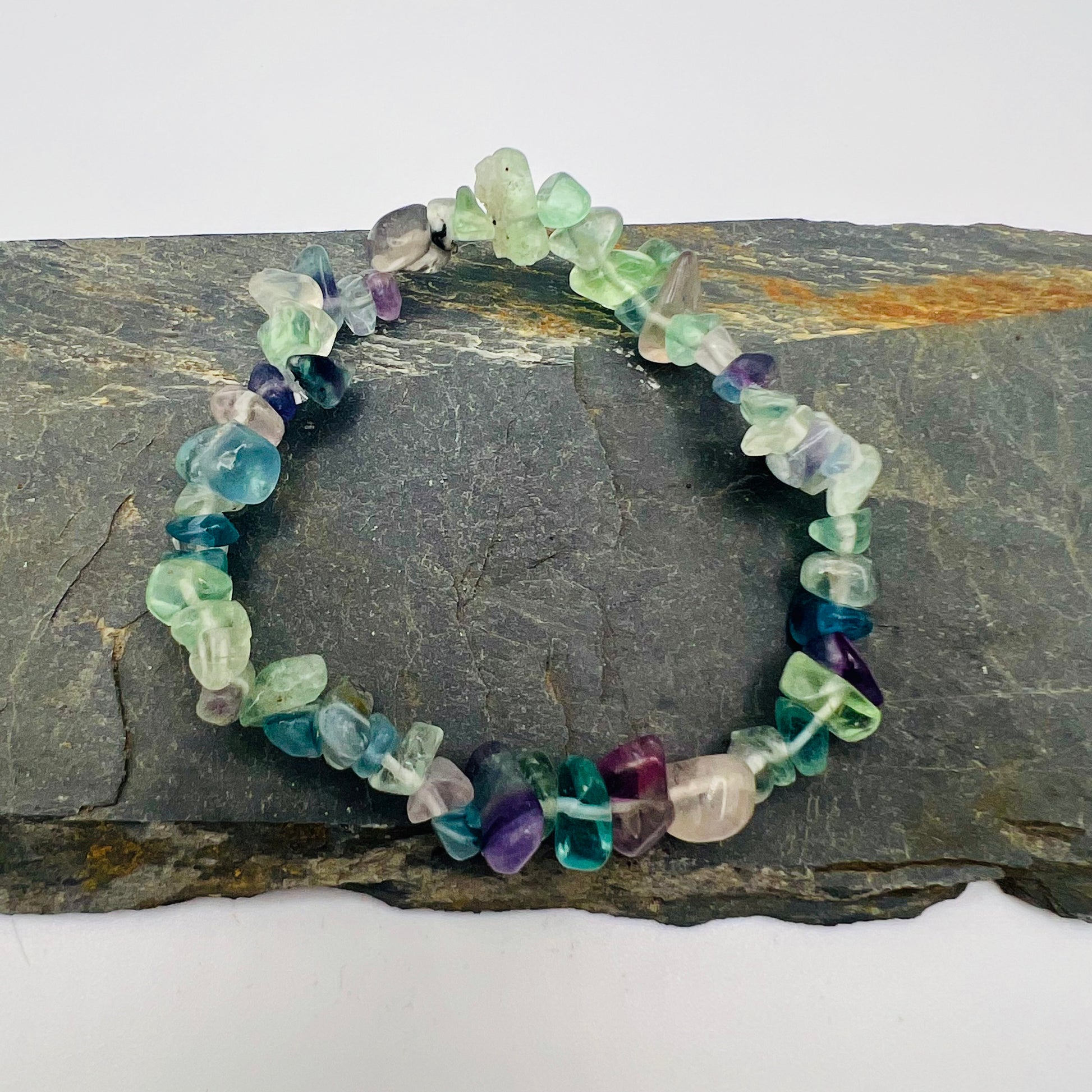 Fluorite crystal chip bracelets combine natural beauty with metaphysical properties valued by crystal enthusiasts. Each bracelet features genuine fluorite chips, known for their striking purple, green, or multicoloured banding. Fluorite is traditionally associated with mental clarity, focus, and emotional balance. The chip design offers an authentic, raw aesthetic while remaining wearable for daily use. Perfect for collectors, meditation practitioners, or those seeking a meaningful accessory with natural gemstone appeal.