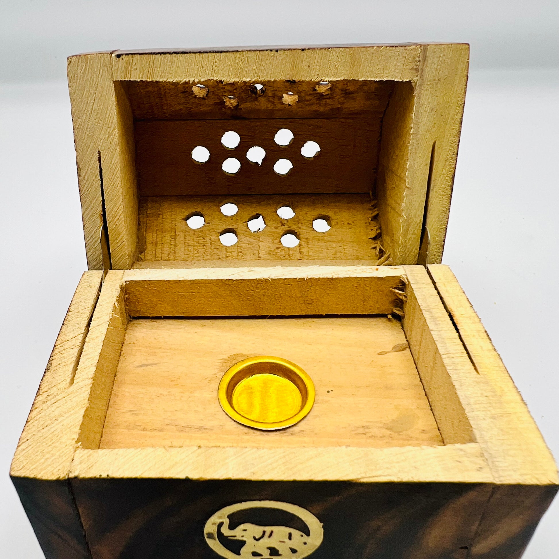 Crafted from sustainable mango wood, this compact smoke box is purpose-built for burning mini incense cones. The natural wood construction provides excellent heat resistance while allowing aromatic smoke to disperse evenly throughout your space. Its minimalist design complements any décor, making it ideal for meditation rooms, offices, or personal sanctuaries. The sturdy base prevents tipping, ensuring safe, unattended burning. Perfect for those seeking a refined, eco-conscious way to enjoy incense rituals.