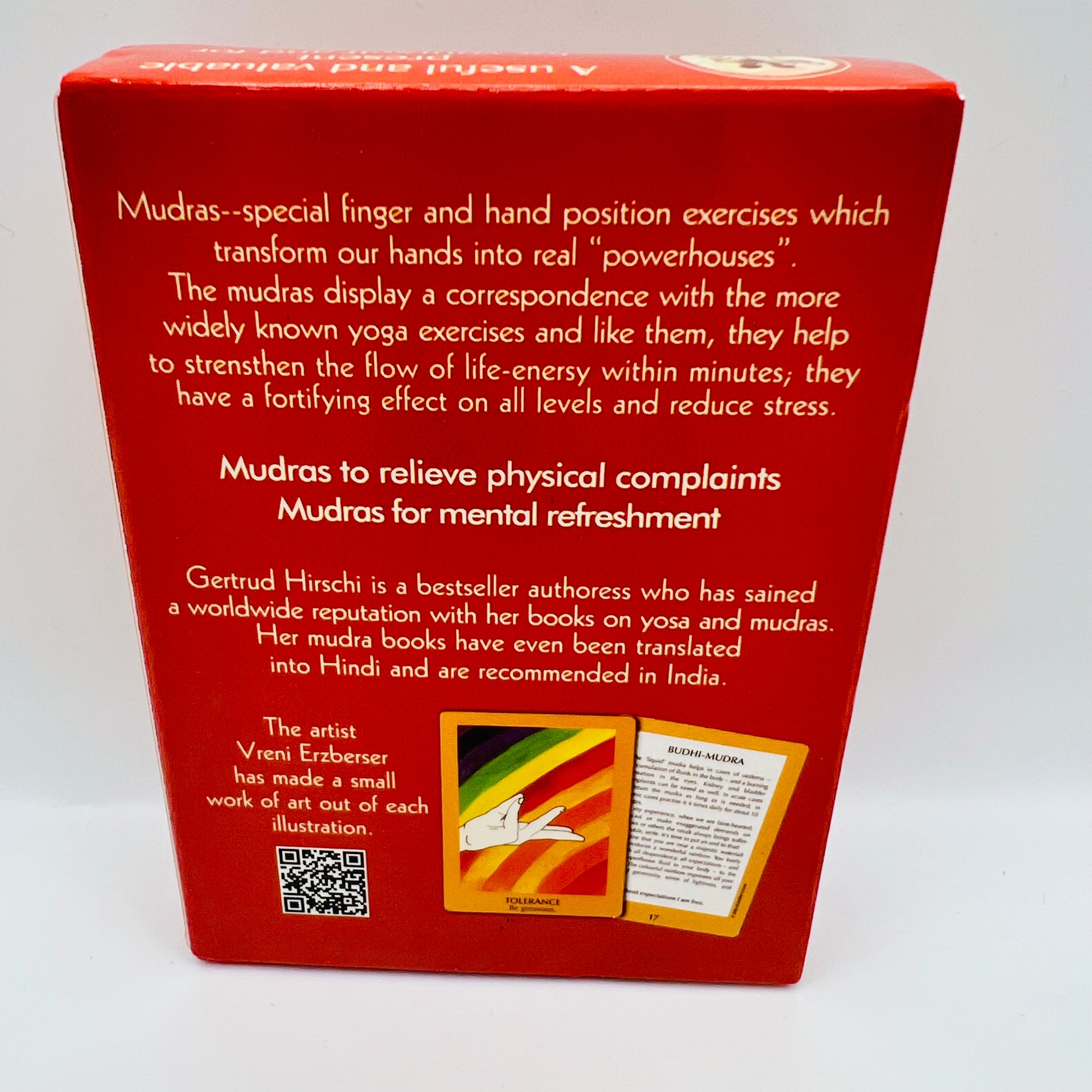 The set includes 68 cards, each illustrating a specific hand position and explaining its benefits for balancing energy flow, improving health, and aiding concentration.