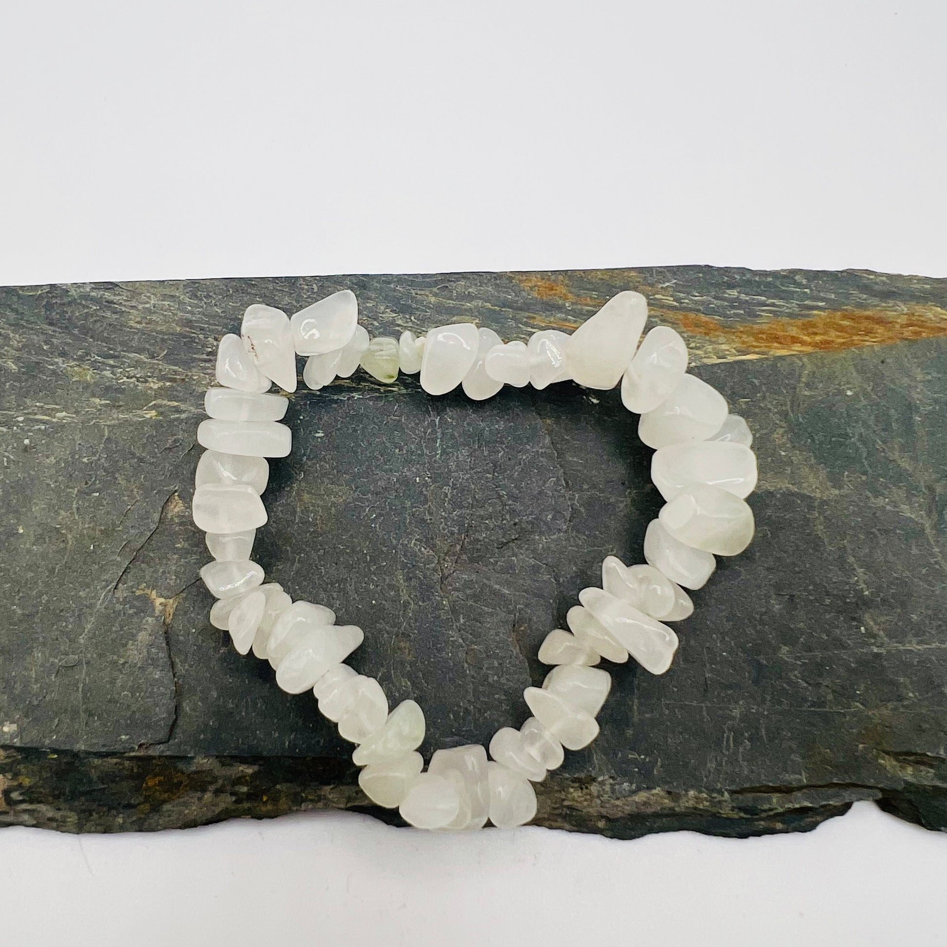 Snow Quartz is prized for its gentle, clarifying energy and milky white appearance with natural inclusions. This bracelet features authentic quartz chips strung together, creating an understated yet meaningful piece. Snow Quartz is traditionally associated with mental clarity, emotional balance, and inner peace. Ideal for daily wear or as a thoughtful gift for crystal enthusiasts. Each bracelet's natural variations make it uniquely yours.